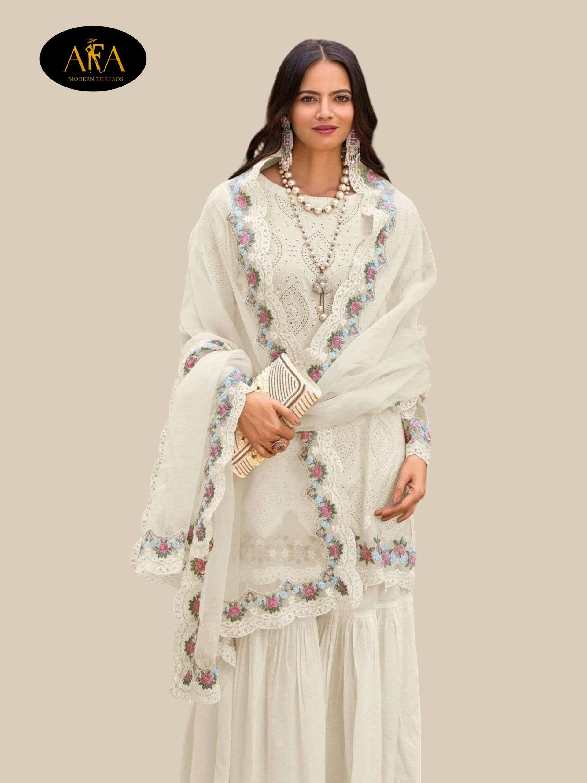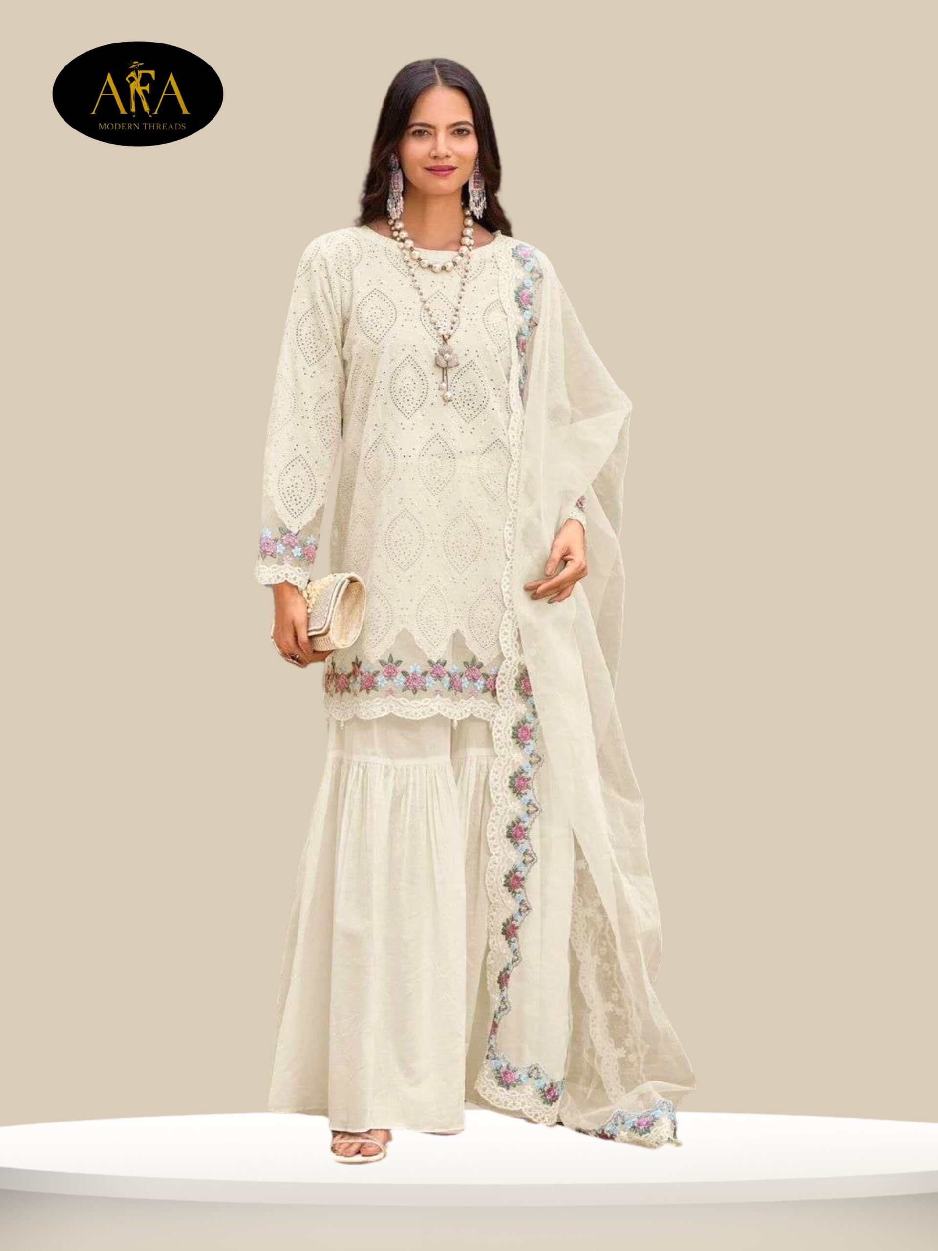 AFA MODERN THREE PEACE SHARARA SET PAKISTANI DRESS